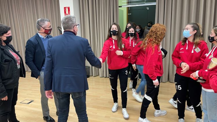 La delegació del club ha estat encapçalada pel seu president, Ricard Vizcarra i s’ha completat amb les jugadores Laia Pagès, Noa Cotello, Laura Pastor, Eva Pastor, Carla Arenas, Laura Freixenet, Abril Santacana, Ona Moreno, i la capitana, Núria Jové, a més del l’entrenador, Miquel Serret, i els components de la junta directiva, la vicepresidenta primera, Ester Molina; la vicepresidenta segona, Meritxell Mata; i la membre de la junta, Àngels Vidal. De part de la Diputació, també han assistit a l’acte la diputada Helena Martínez i el diputat Jordi Verdú.