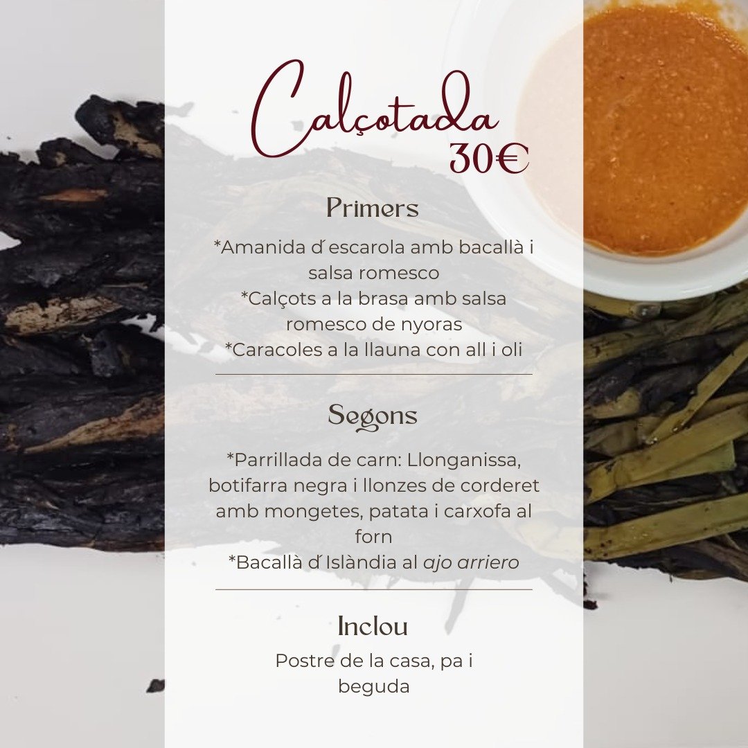 Restaurant El Galeó. Menú de Calçotada amb segell de qualitat suprema. Preu 30 €