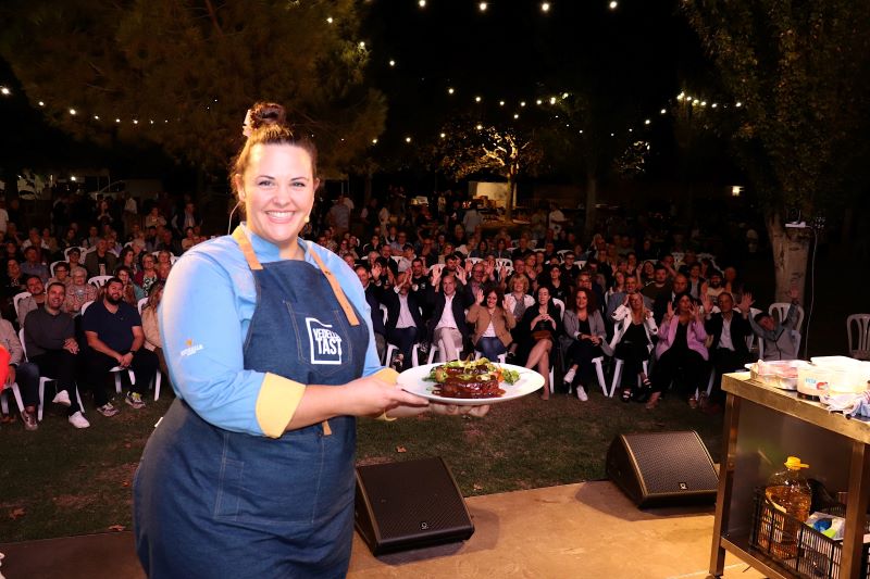 Tot seguit, la xef Gesamí Caramés, propietària del Restaurant Meleta de Romer de l’Ametlla de Mar, ha ofert un xoucooking cuinant costella de vedella a baixa temperatura amb pataca i pebrots del padró. A continuació, s’ha efectuat un tastet de diferents receptes abans de fer un recorregut pels diferents estands de VedellaTast.