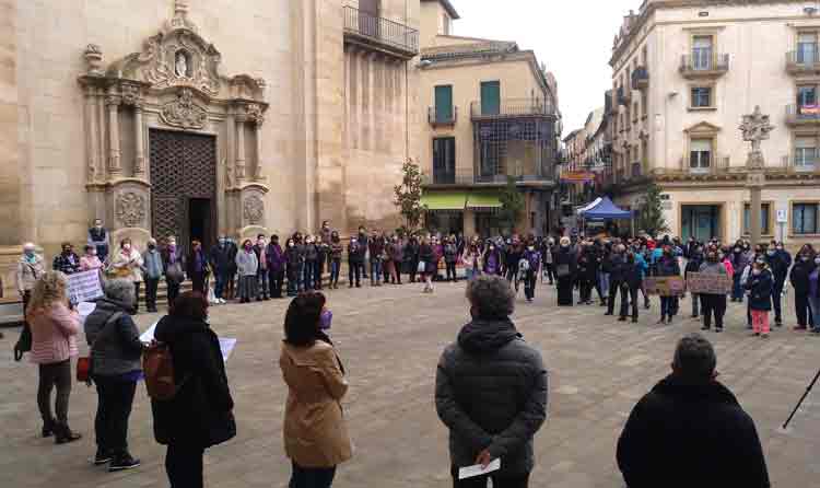 Tàrrega fa sentir la seva veu en favor de la plena igualtat de gènere. El municipi s’ha sumat avui dilluns al Dia Internacional de les Dones clamant per posar fi a la bretxa salarial i al sostre de vidre (les barreres que limiten l’ascensió professional de les dones). Són missatges reflectits a les lones que la Regidoria d’Igualtat ha penjat a les façanes de la Casa Consistorial, el Centre La Solana, la Biblioteca Germanes Güell, l’Escola Municipal de Música i l’Espai Molí d’El Talladell. La capital de l’Urgell també denuncia que la situació actual de pandèmia ha accentuat encara més les greus discriminacions que la societat exerceix sistemàticament sobre les dones. Així ho ha expressat durant la lectura del Manifest, redactat per l’Institut Català de les Dones, que ha tingut lloc aquest migdia a la plaça Major amb assistència d’entitats i ciutadania.