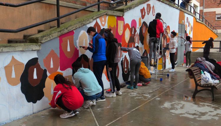 Un grup de joves pinten un mural de 49 metres quadrats en favor de la tolerància i el respecte a la Mariola