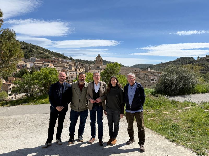 El president de la Diputació de Lleida, Joan Talarn, acompanyat del vicepresident del Patronat de Promoció Econòmica, Jordi Verdú, ha visitat aquest dimecres L’Olivera Cooperativa, al municipi de Vallbona de les Monges, on han estat rebuts per la presidenta de l’entitat, Clara Griera, acompanyada del president i promotor del projecte des dels anys 80, Carles de Ahumada, i del responsable de producció, Pau Moragas.